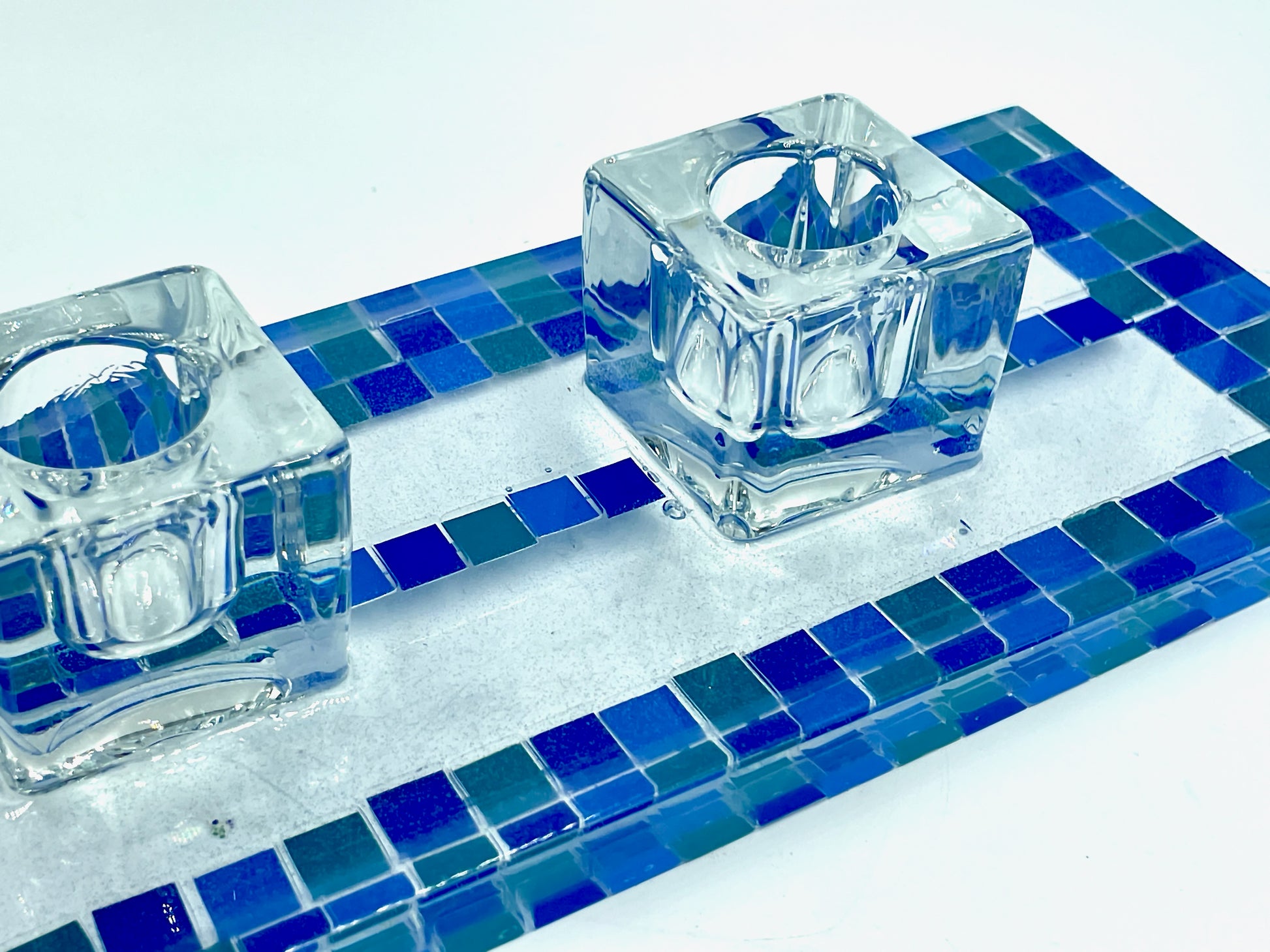 These shabbat candles, made of glass and resin, feature the phrase "shabbat shalom" written in Hebrew on the base. Measuring 10x4", they create a peaceful and sacred ambiance for your Shabbat celebration.